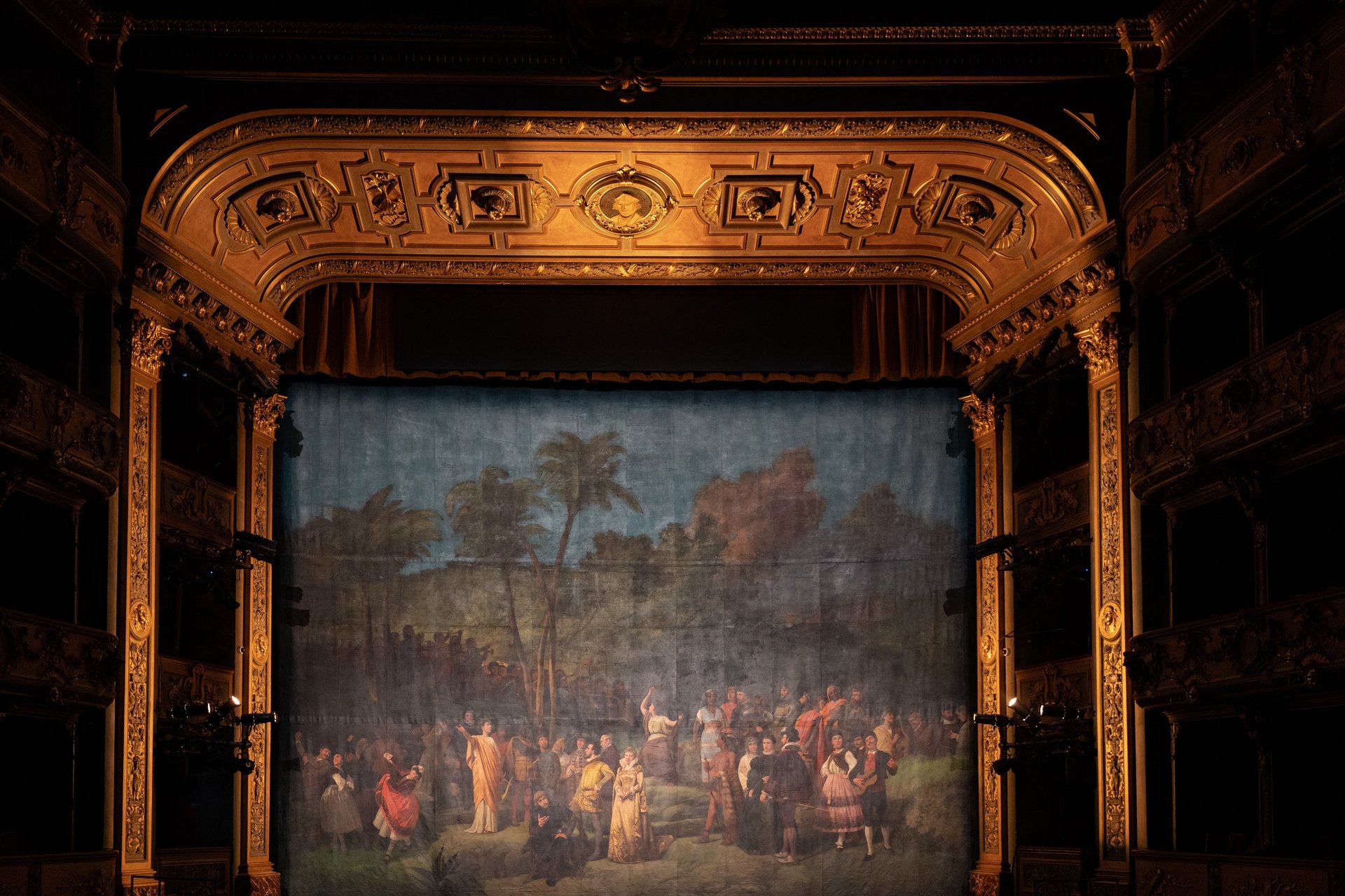 Drama teatro, agua y luces, Olvido teatro, luces en escenario